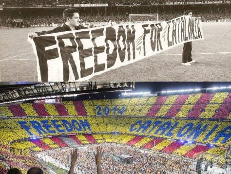 exhibit dissabte al Camp Nou, va ser un dels lemes sobiranistes més